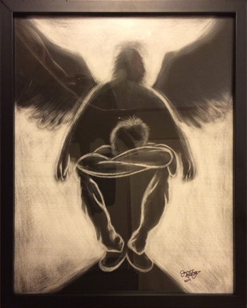 Current piece – Charcoal Tribute/Dog Request/BW/$15 no frame and $30 with frame.